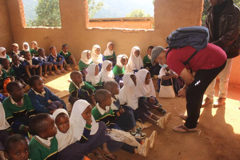I had the good fortune to visit a very remote village in the Usambara mountains, called Mazumbai, located in Tanga District, Tanzania. I was there on another mission to aid poor villages struggling for water. I came upon a small school that struggles to educate 365 students. What I like about this school is they did not wait for the government to erect the 2 ramshackle mud buildings that houses their children’s school. It was their own labor that did it. Half the students sit on dirt floors. The school lacks a proper toilet, there are no windows so the children huddle together for warmth in these winter months.