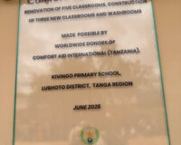 It was a happy day for approximately 650 students at the remote Kivingo Primary School in Lushoto District, Tanga Region, Tanzania, where CAI donors have renovated their dilapidated school, which was previously in a state of disrepair and decay. Five classrooms were renovated with new roofs, new flooring, and tiles. Three new classrooms were constructed, and washrooms for both girls and boys were built, along with new desks for all – a fantastic investment for these poor students.