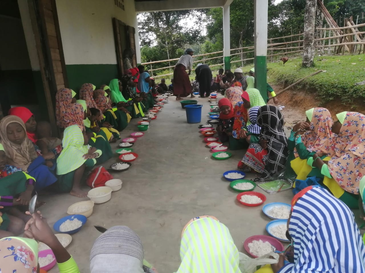 Underprivileged students at a boarding school for 1,200 girls and boys from remote areas on the outskirts of Manakara, in Southern Madagascar, enjoy a wholesome meal daily for lunch during school days. This essential food aid allows them to concentrate on their education rather than struggle with the burden from a lack of proper nutrition.