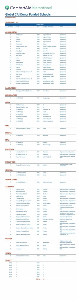CAI has constructed and renovated 65 schools in deprived communities worldwide, providing poor children an opportunity at quality education – and the process continues. The latest is a massive school/orphanage project in Zanzibar for 500 children, including a home for 50 orphaned girls.