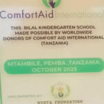 The Bilal Kindergarten School in Pemba, Tanzania, sponsored by donors of Comfort Aid International (USA), was officially opened on October 13, 2025. This much-needed, currently nonexistent early childhood learning center will provide a platform for young children to get a head start in their elementary education.